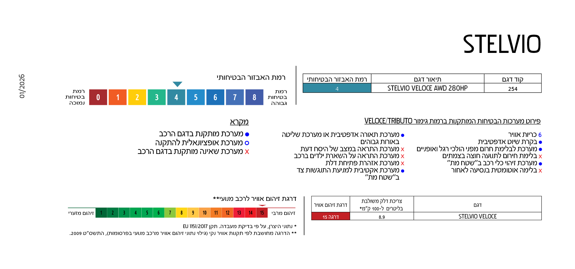 אלפא רומיאו סטלביו מציעה את האיזון המנצח בין התשוקה לנהיגה ובין מערכות נהיגה אוטומטיות מתקדמות. הסטלביו מצוידת במערכות חכמות המסייעות לנטר את סביבת הרכב על מנת לאפשר שליטה והנאה גבוהה במיוחד מנהיגה.